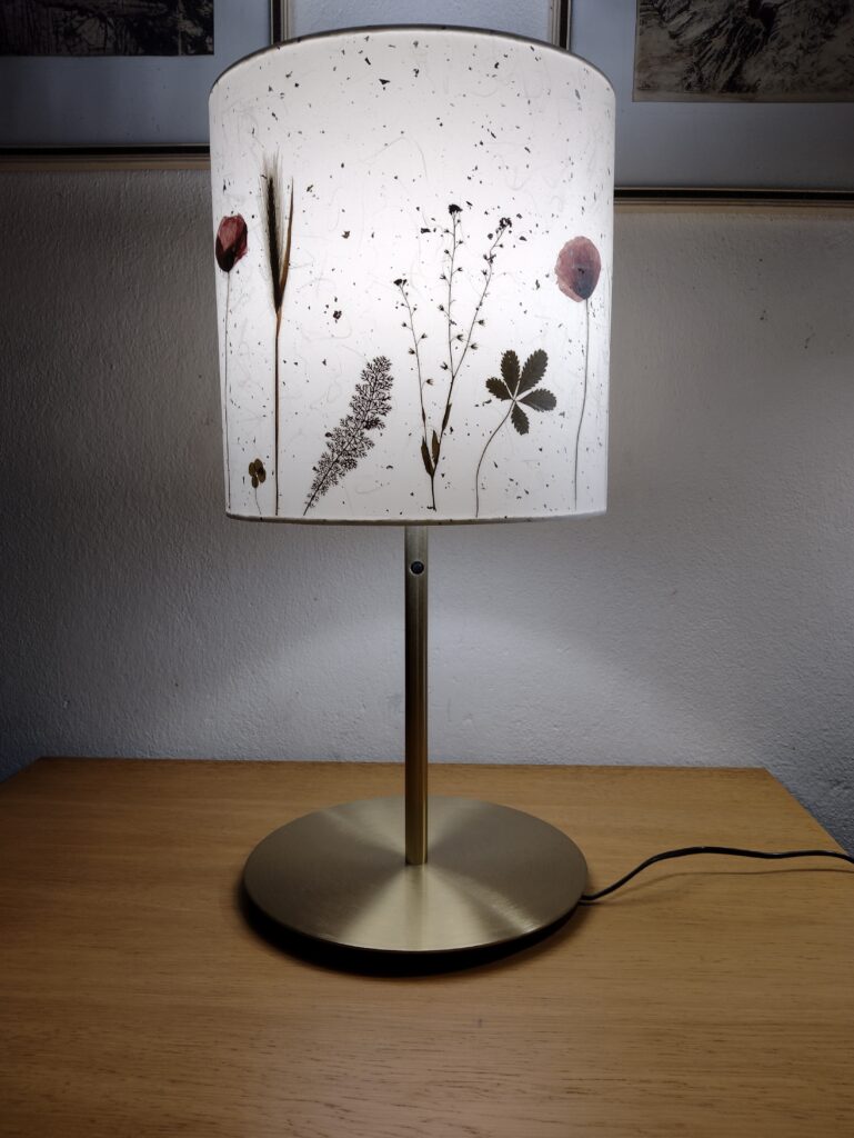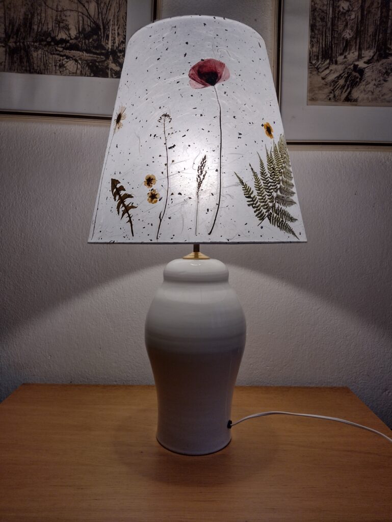 - Japonský morušový papír, která je velmi světlý (skoro bílý), jemný a krásně prosvítá. V případě zájmu pod něho můžu vložit vylisované květy nebo listy. Stínidlo pak navodí příjemnou uklidňující atmosféru.